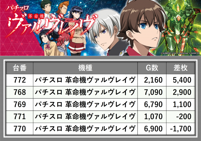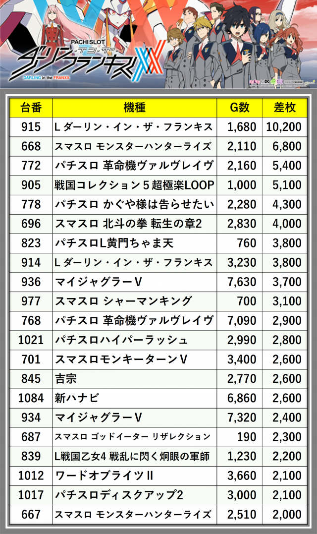 ※差枚数順に掲載しています