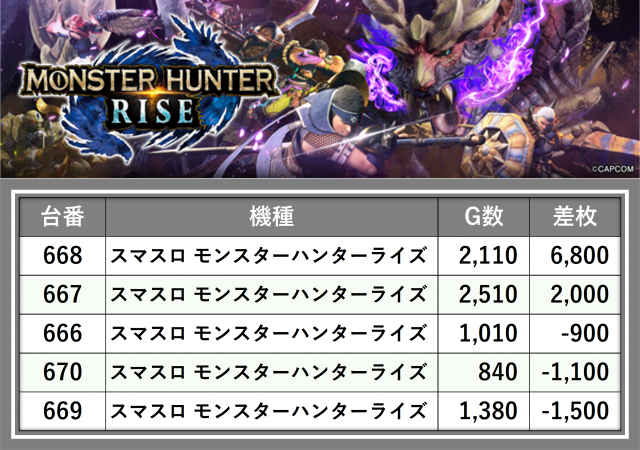 厳選された取材対象機種をはじめ、その他スロット全体から好記録が飛び出した!プレイヤーが楽しんだ1日を下記データにて振り返ってみて欲しい。