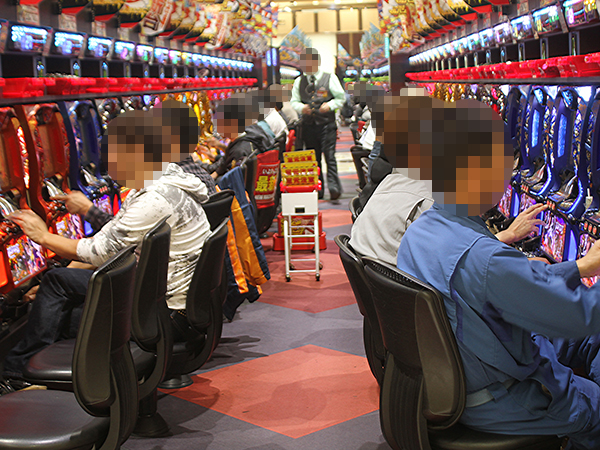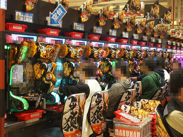取材時、店内には既に多くのプレイヤーが集結。あふれんばかりの笑顔を浮かべながら遊技を楽しんでいた。