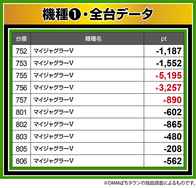 『マイジャグラーⅤ』の755番台が+5,100ptオーバー!!