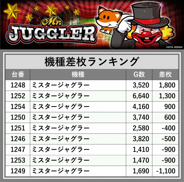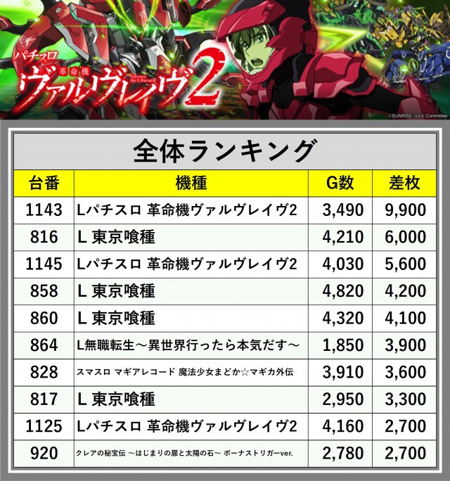 厳選された取材対象機種をはじめ、その他スロット全体から好記録が飛び出した!プレイヤーが楽しんだ1日を下記データにて振り返ってみて欲しい。