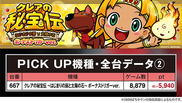 ボーナスタイプからは、「クレアの秘宝伝 ~はじまりの扉と太陽の石~ ボーナストリガーver.」をピックアップ。