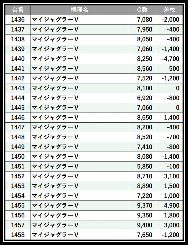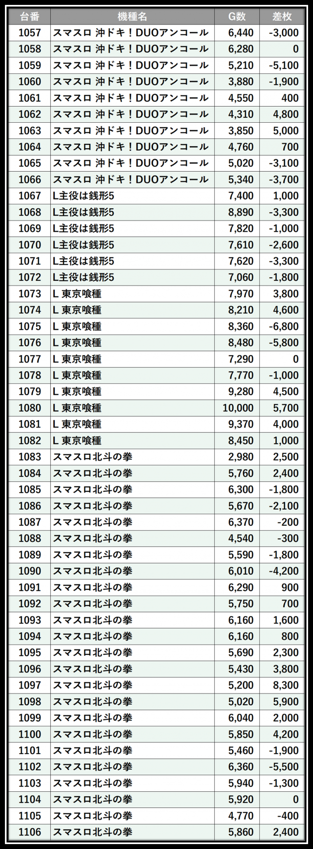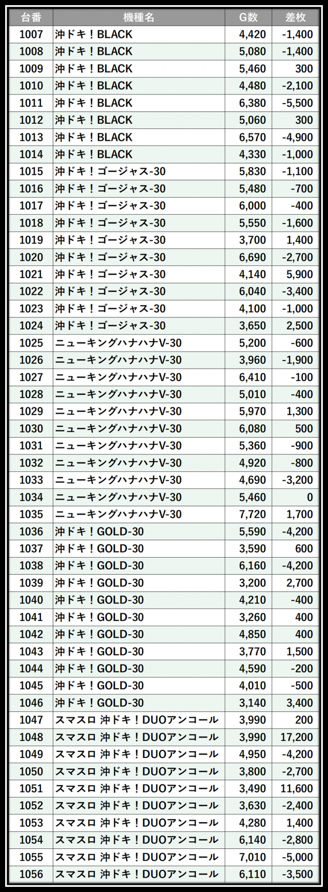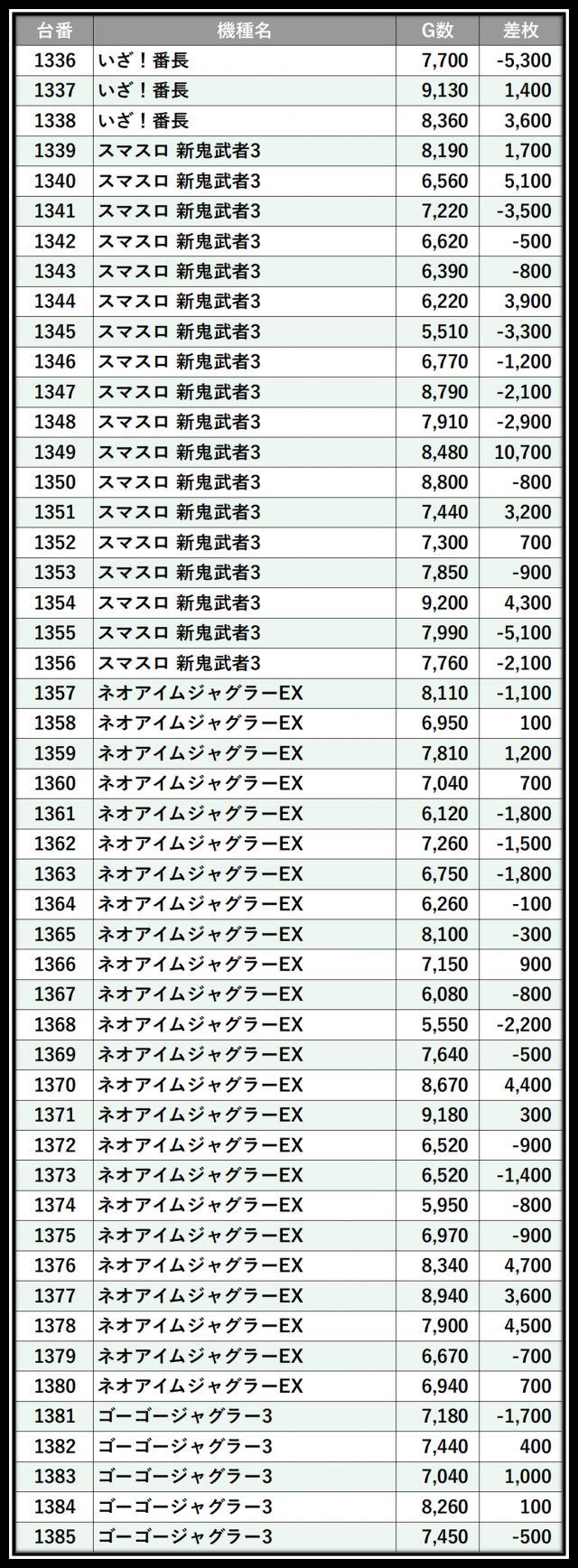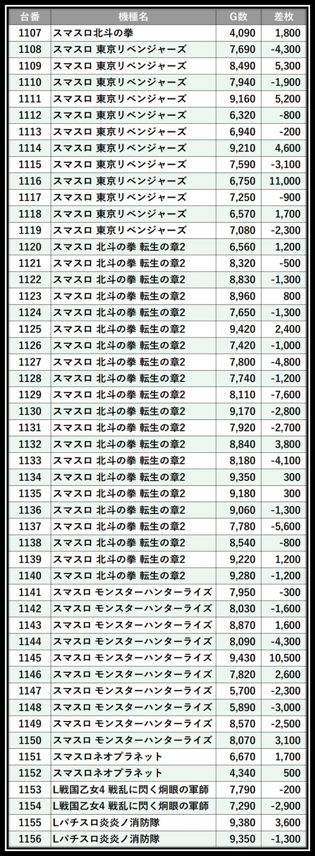 ※差枚数順に掲載しています