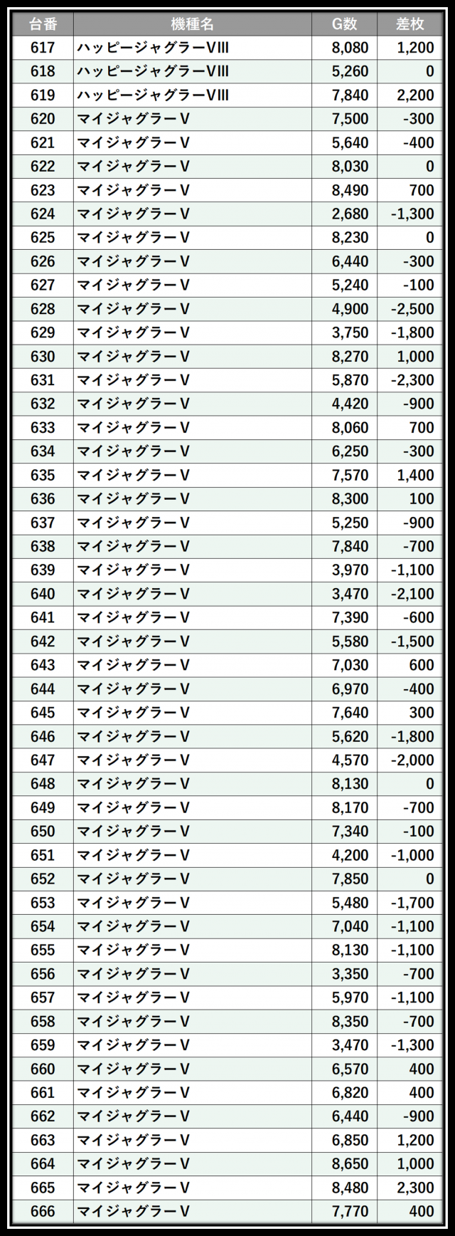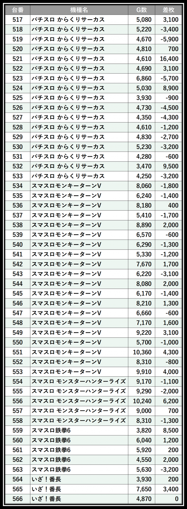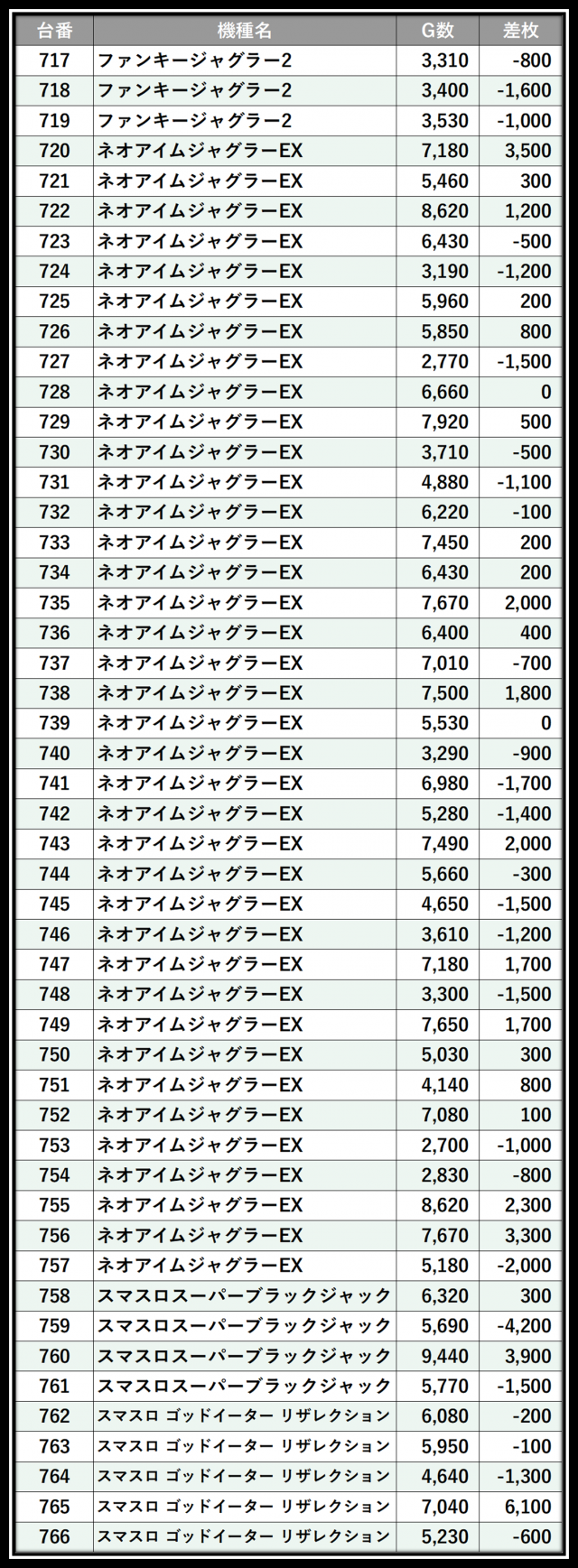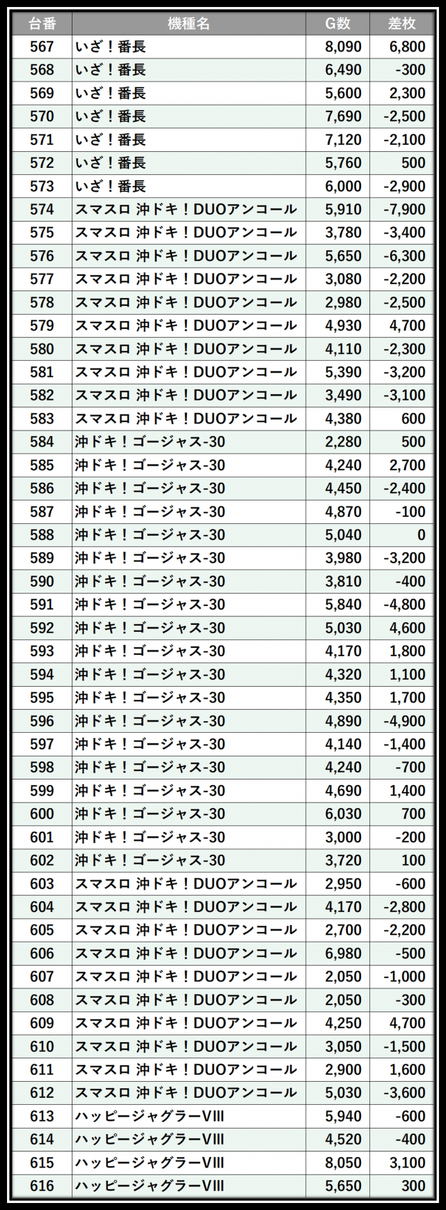 ※差枚数順に掲載しています