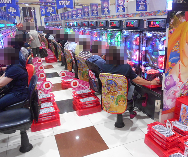 16時頃の4円パチンコで最も賑わっていたのは「CR大海物語3スペシャル」。空き台がほとんど見当たらないほどに大勢のプレイヤーが遊技をおこなっていた。笑顔のプレイヤーも数多くみることができ、シマ全体が大きな活気に包まれていた。