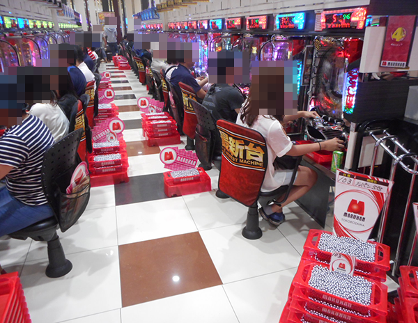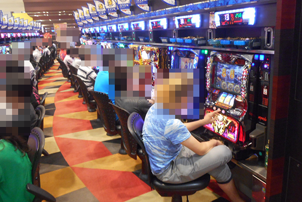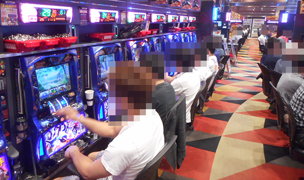 5円パチスロもほぼ満席となっているほどの盛況ぶり。
