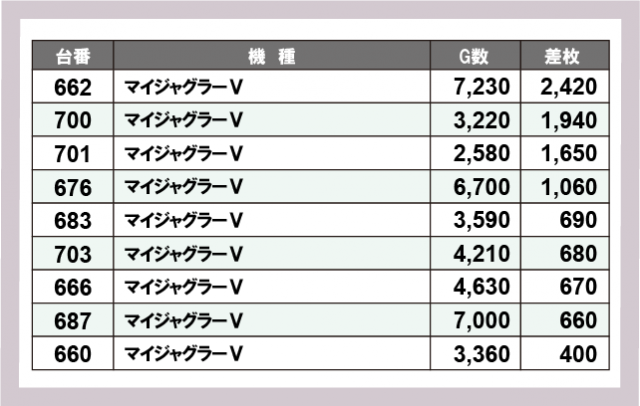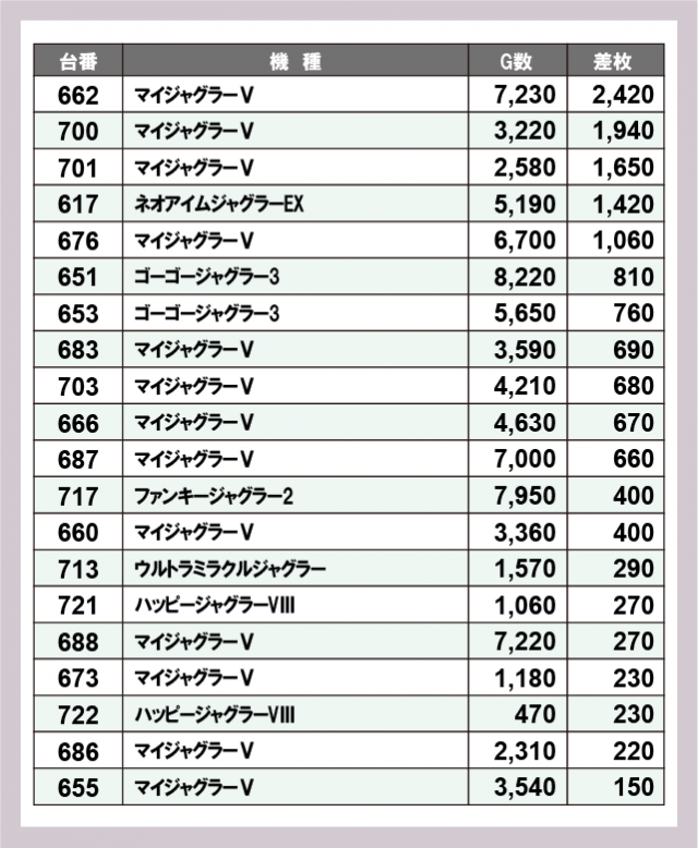 ジャグラー差枚ランキング