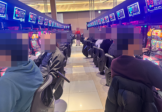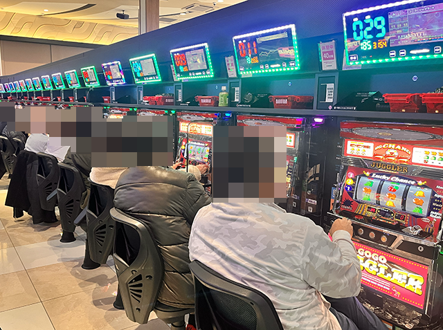 1月25日、静岡県袋井市にある「マルハン袋井店」へと向かった。今回の取材は、「アームストロング取材」だ。パチスロコーナーをみると、自慢の腕を披露しているような姿があった。
