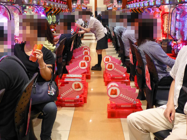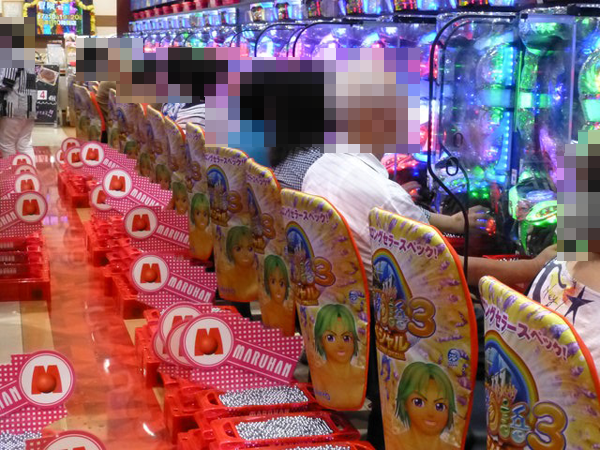 4円パチンコと同様に定番機種も盛況で、ボーナスタイプのジャグラーシリーズにはシンプルな告知を存分に堪能できているようなプレイヤーも確認できた。