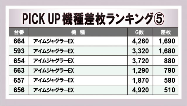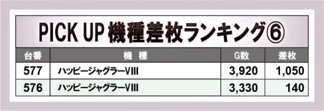 PICK UPされた10機種を見ると、当日はどこを選んでも可能性がある状況だった。『マイジャグラーⅤ』を筆頭にジャグラーシリーズは高G数で結果を残す台が多く、粘る価値を感じさせる内容に。一方でスマスロ機も要所でしっかり存在感を発揮しており、、スマスロ機の破壊力とノーマルタイプの安定感がしっかり噛み合った結果となった。