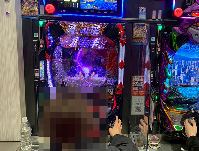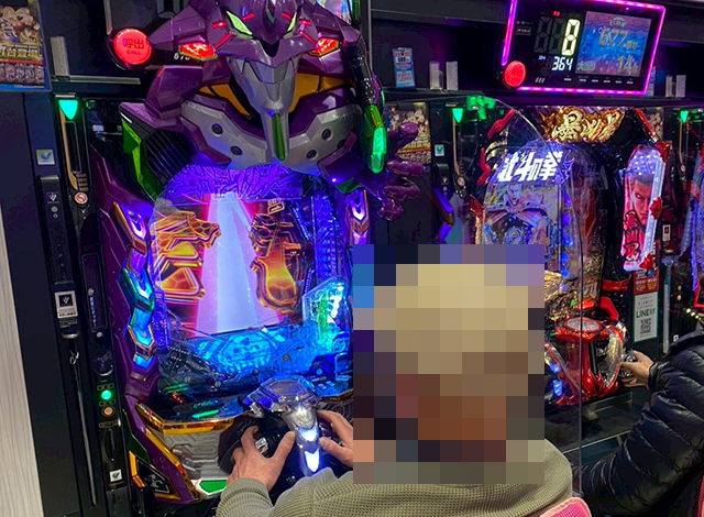 ほかにも、「e牙狼12黄金騎士極限」や「e 新世紀エヴァンゲリオン ~はじまりの記憶~」などに、うれしそうに遊技をおこなっている姿があった。