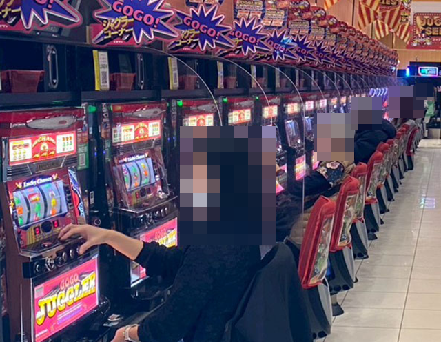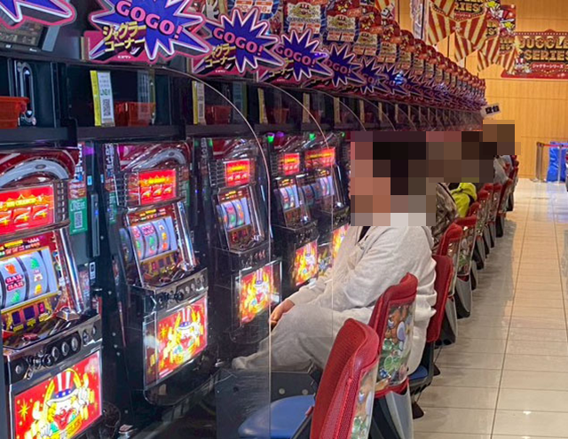 店内をみると、ジャグラーシリーズをはじめ、さまざまな機種が支持されていた。