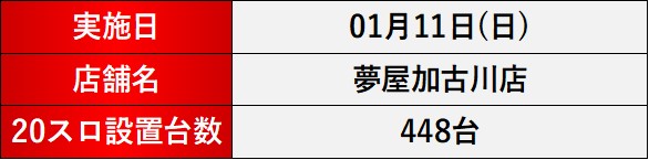 1月11日(日)夢屋加古川店にて、DMMぱちタウンの新感覚取材「スロセレ」を実施。
