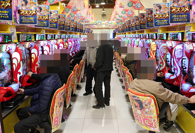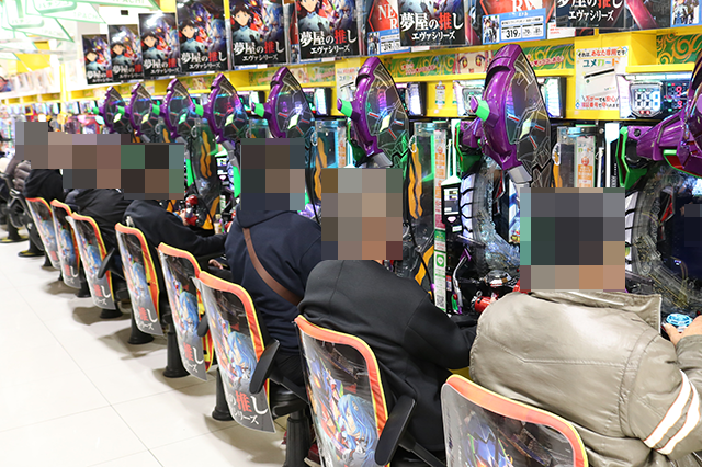 パチンコをチェックすると、「新世紀エヴァンゲリオン~未来への咆哮~」や「e 新世紀エヴァンゲリオン ~はじまりの記憶~」がほぼ満席となっていた。