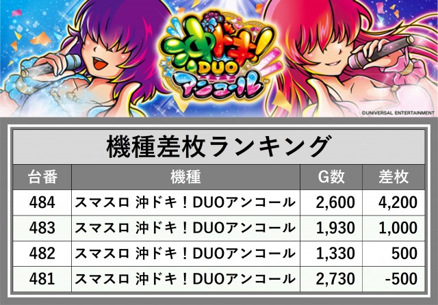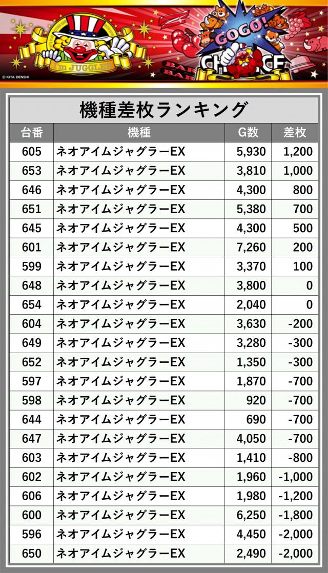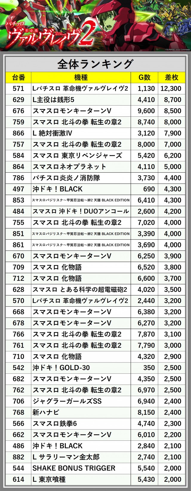※差枚数順に掲載しています