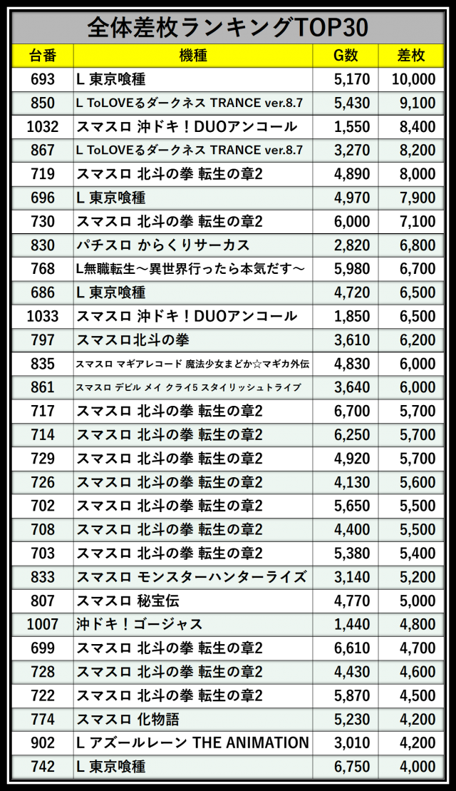 その結果の中から、ぱちタウンが注目すべきポイントを厳選してユーザーにお届け!プレイヤーが楽しんだ一日を下記データにて振り返ってみて欲しい。