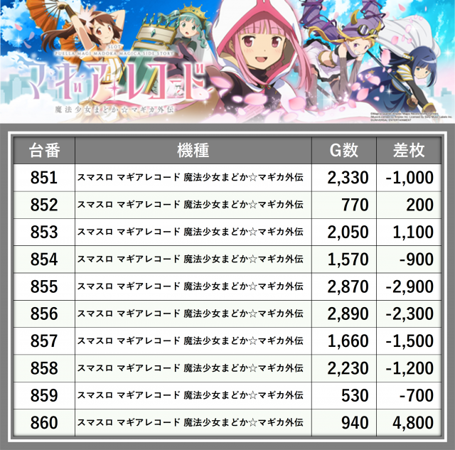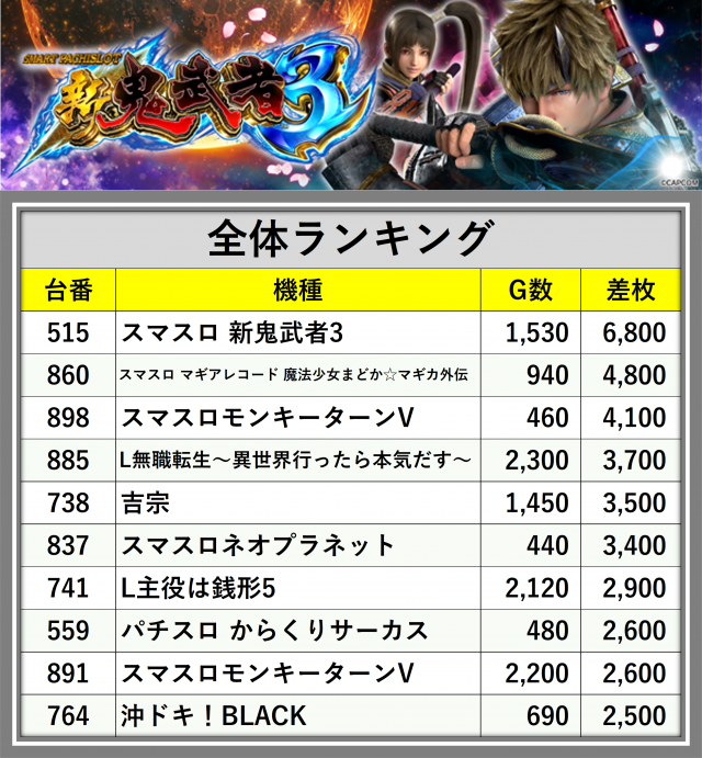 ※差枚数順に掲載しています