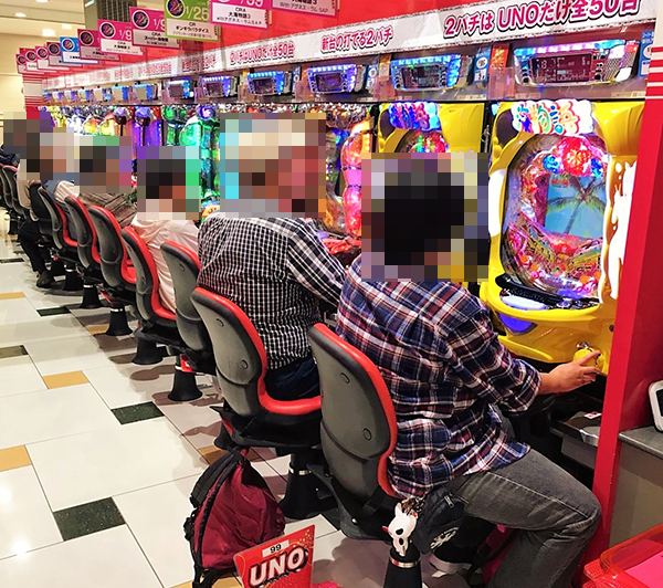 「パチンコCR学園黙示録 HIGH SCHOOL OF THE DEAD」や海物語シリーズなど、さまざまな機種で笑顔のプレイヤーを目にした。