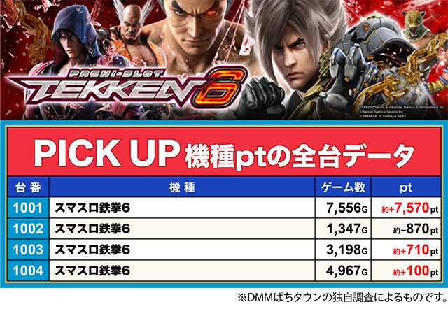 「スマスロ鉄拳6」の1001番台が約+7,570pt!!