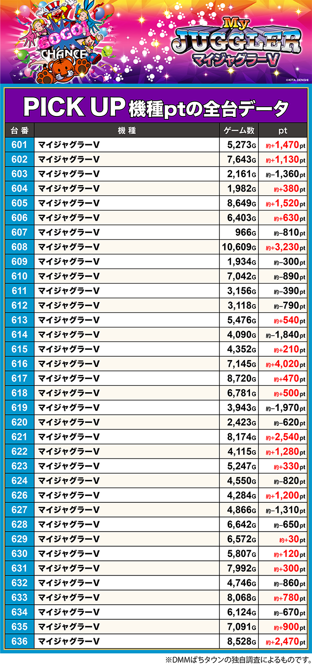 9台は約+1,200pt以上で、約+4,000ptを上回った台もあった。