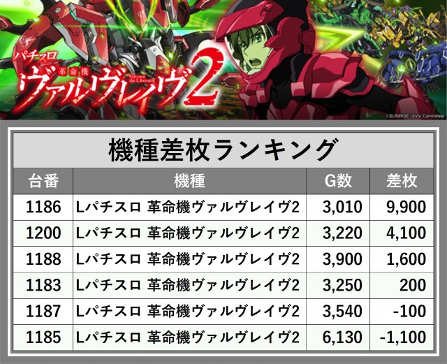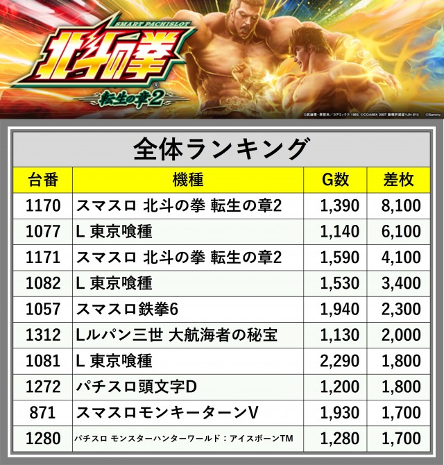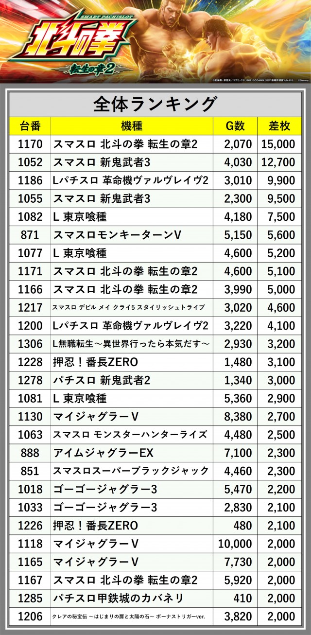 ※差枚数順に掲載しています