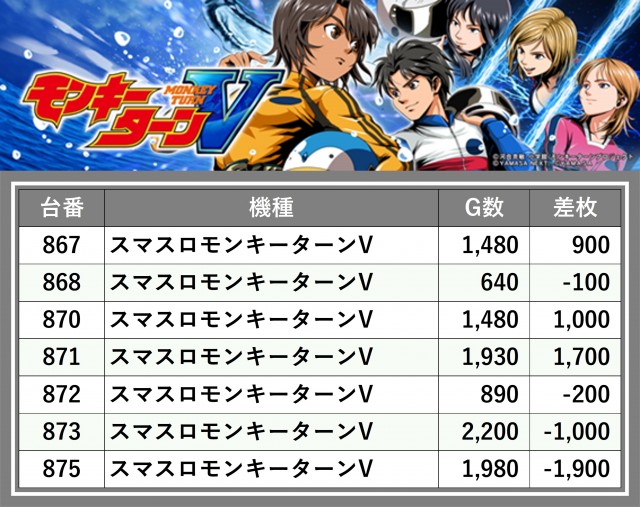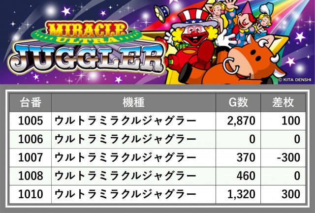 厳選された取材対象機種をはじめ、その他スロット全体から好記録が飛び出した!プレイヤーが楽しんだ1日を下記データにて振り返ってみて欲しい。