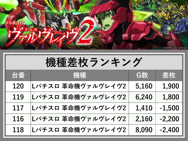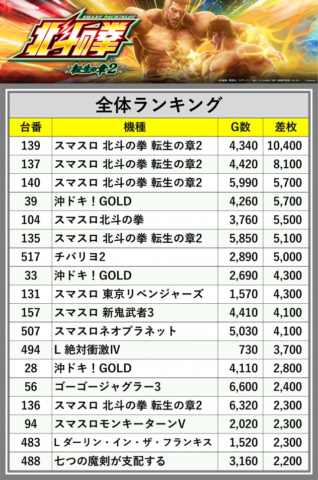 ※差枚数順に掲載しています