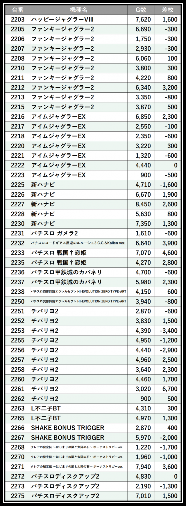 その結果の中から、ぱちタウンが注目すべきポイントを厳選してユーザーにお届け!プレイヤーが楽しんだ一日を下記データにて振り返ってみて欲しい。