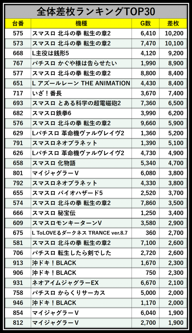 その結果の中から、ぱちタウンが注目すべきポイントを厳選してユーザーにお届け!プレイヤーが楽しんだ一日を下記データにて振り返ってみて欲しい。