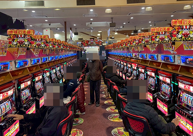 午後のパチスロでは、ジャグラーシリーズなどに楽しげな景色が広がっていた。