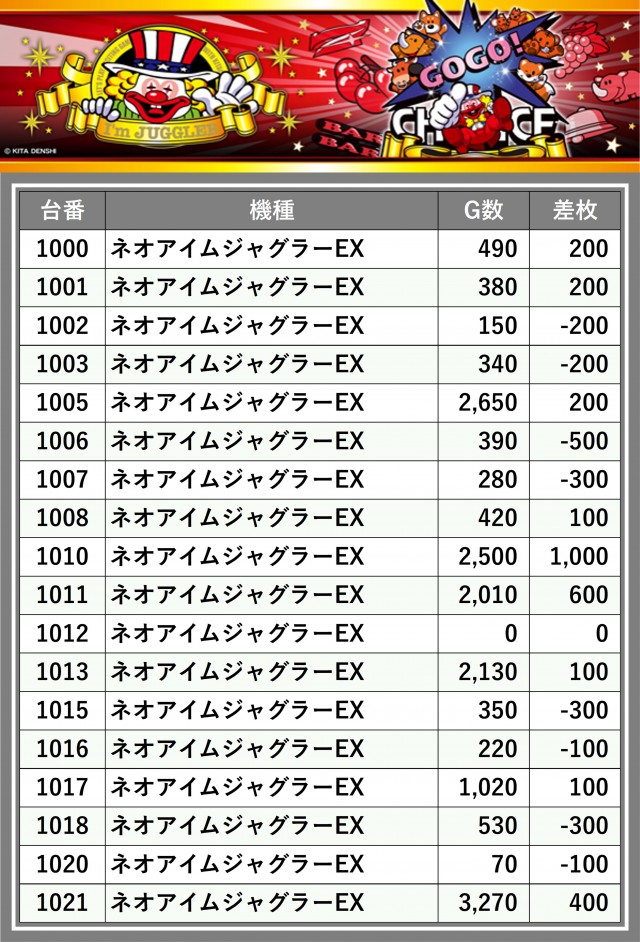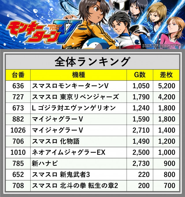 ※差枚数順に掲載しています