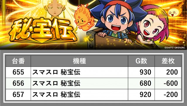 厳選された取材対象機種をはじめ、その他スロット全体から好記録が飛び出した!プレイヤーが楽しんだ1日を下記データにて振り返ってみて欲しい。