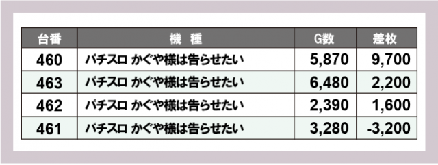 ※差枚数順に掲載しています