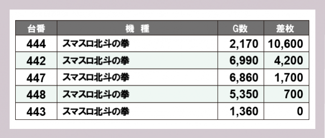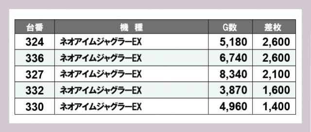 ※差枚数順に掲載しています