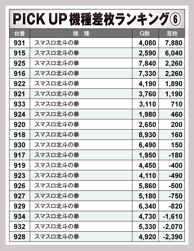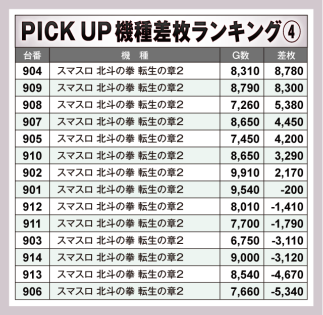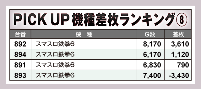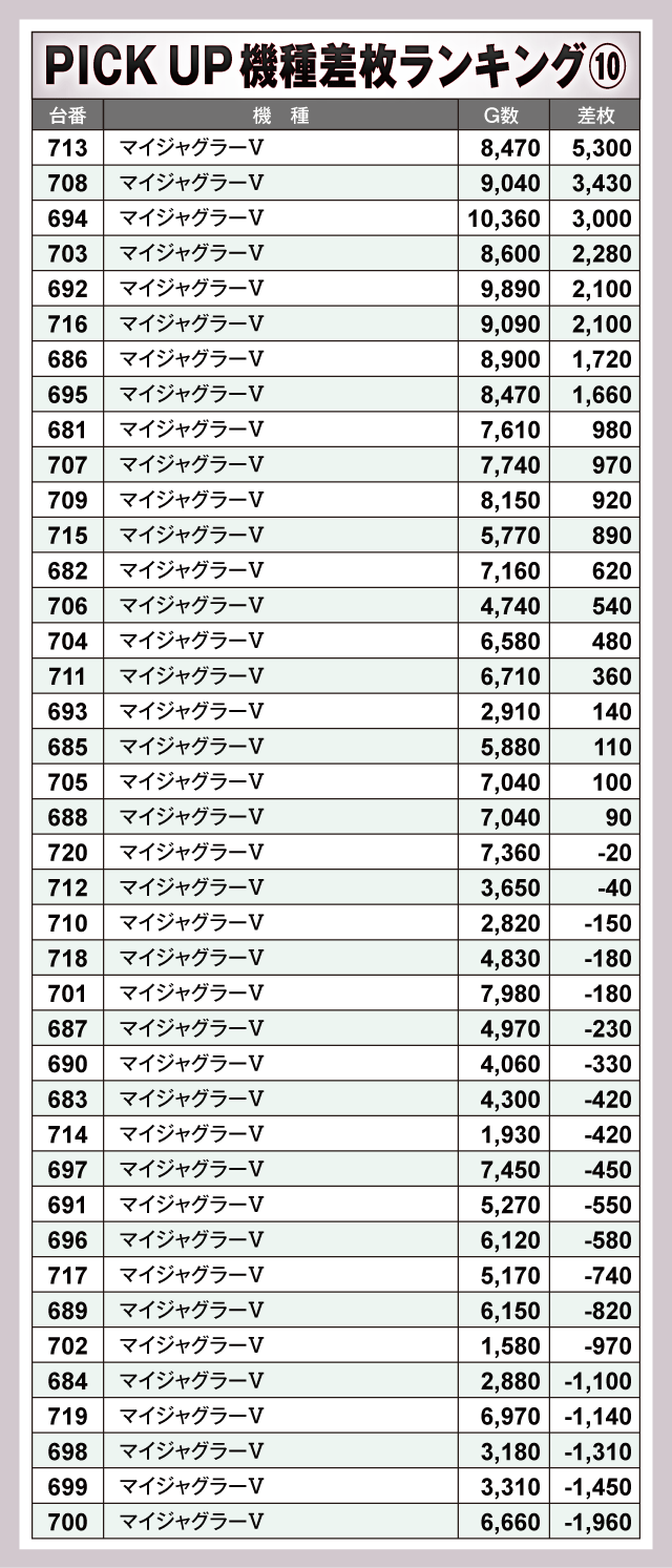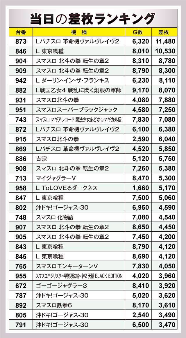 ※差枚数順に掲載しています。