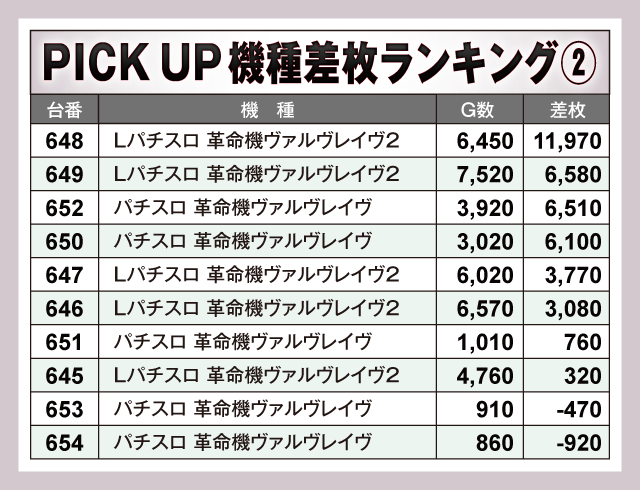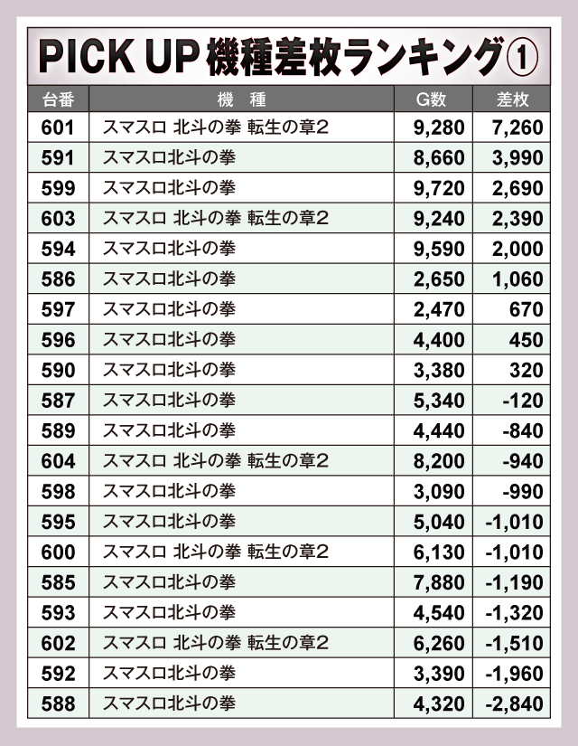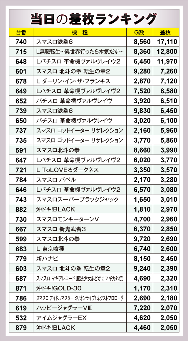 ※差枚数順に掲載しています。
