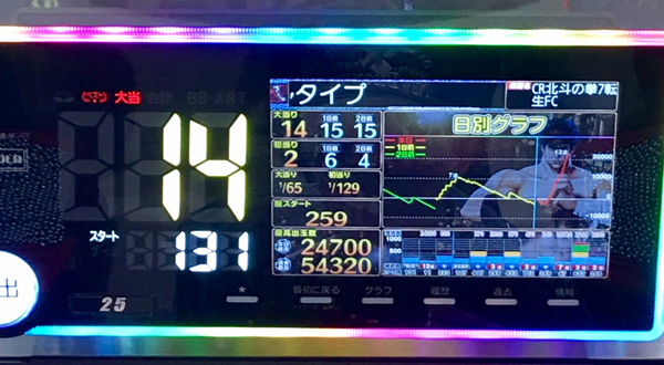 13連チャンで獲得出玉が24000発を超えた「ぱちんこCR北斗の拳7 転生」!
