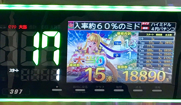 イキイキとした表情でハンドルをにぎっていたことからも、理想的な展開で遊技をおこなえていたようだ。