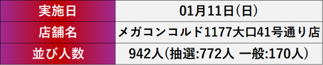 1月11日(日) メガコンコルド1177大口41号通り店にて、DMMぱちタウンの「ハナハナ格付けスピリッツ」取材を敢行。
