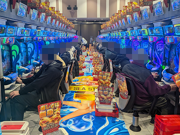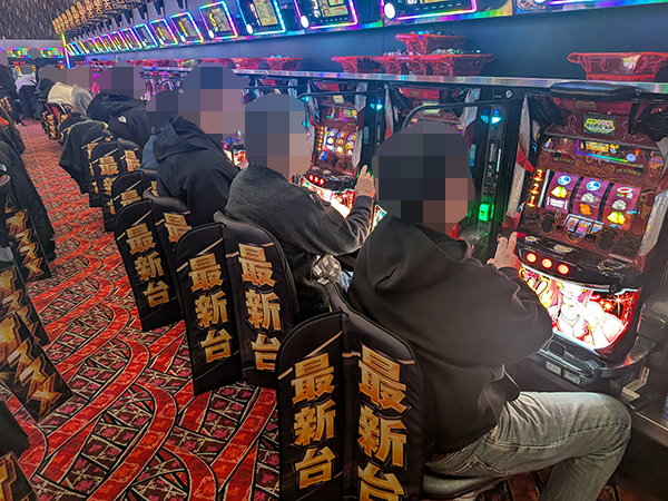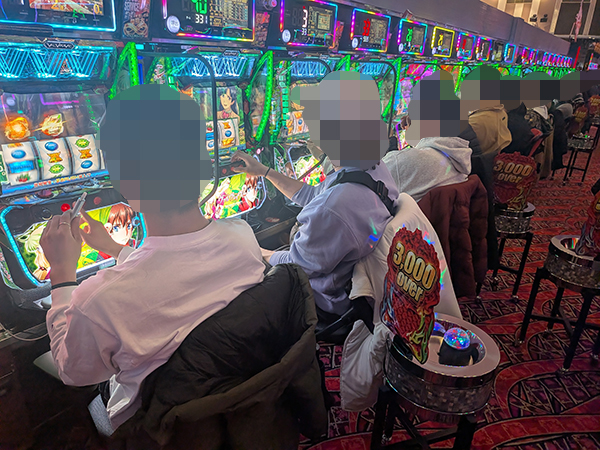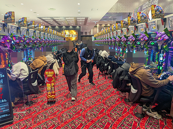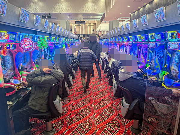 取材時は既に多くのプレイヤーが集結し、パチンコ・パチスロを問わずにぎやかな状況となっていた。