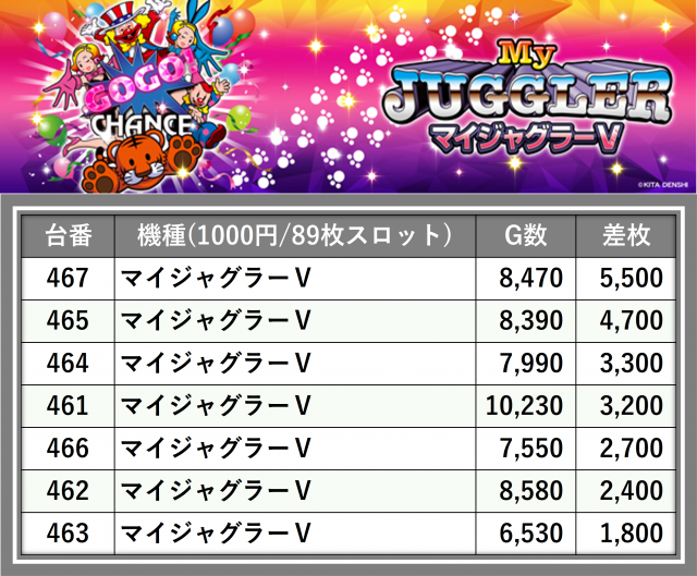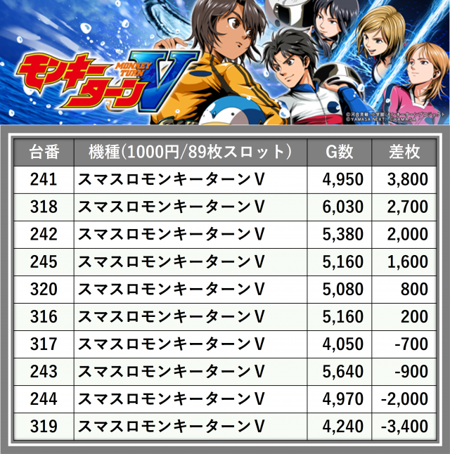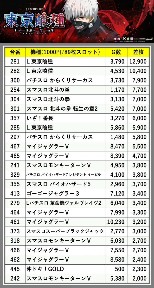 厳選された取材対象機種をはじめ、その他スロット全体から好記録が飛び出した!プレイヤーが楽しんだ1日を下記データにて振り返ってみて欲しい。