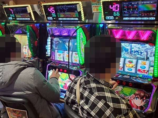 取材時は多くのプレイヤーが来店。パチンコ・パチスロともに、様々な機種が支持を得ていた。