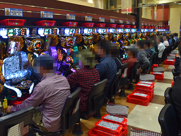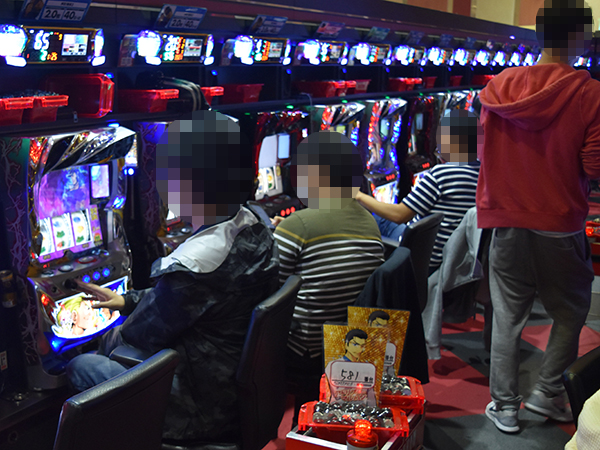 20円パチスロの様子をうかがうと、朝に引き続き盛況な「押忍!番長3」や「バジリスク~甲賀忍法帖~絆」などでプレイヤーの華麗なパフォーマンスを目撃。それぞれ心から遊技を堪能できているようであった。