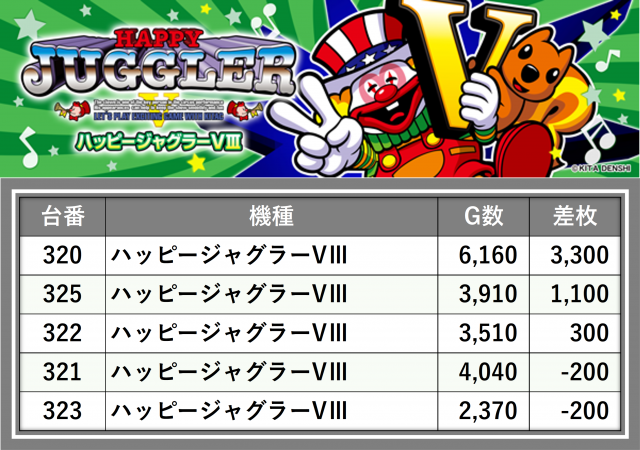 厳選された取材対象機種をはじめ、その他スロット全体から好記録が飛び出した!プレイヤーが楽しんだ1日を下記データにて振り返ってみて欲しい。