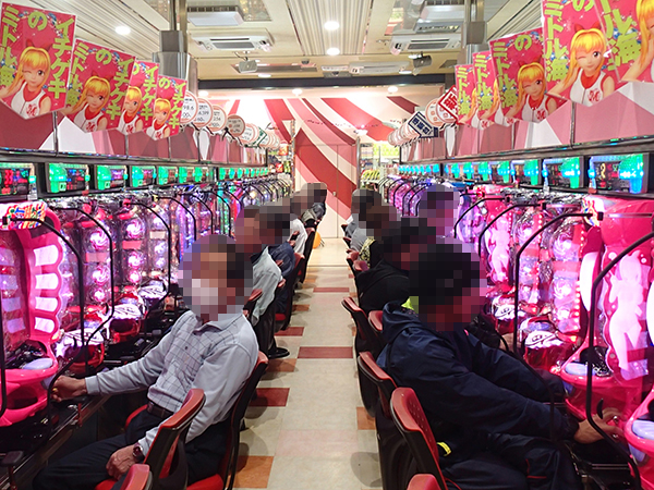 17時半ごろに1円パチンコを見て回ると、「CRスーパー海物語IN沖縄4」を始めとする海物語シリーズが大人気。そのほかバラエティーコーナーでも、多くのプレイヤーが遊技を楽しんでいた。