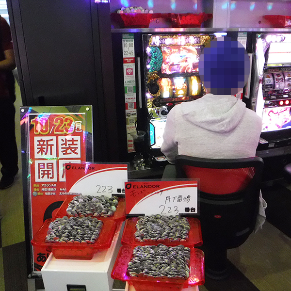 16時半過ぎの1000円/47枚パチスロでは、「沖ドキ!」や「バジリスク~甲賀忍法帖~絆」が大人気。機種の性能を最大限に発揮したプレイヤーの姿も確認している。