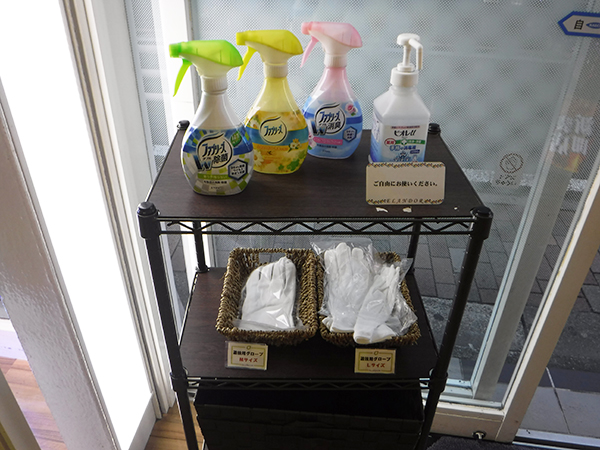 そして、タバコのにおいが気になるプレイヤーに嬉しい消臭スプレーを複数用意。さらに手袋なども提供とアメニティグッズが充実している。