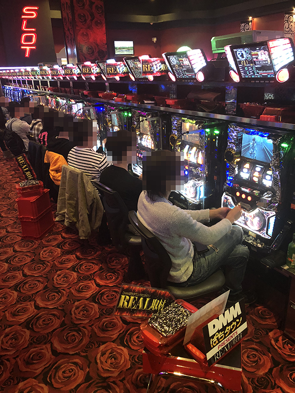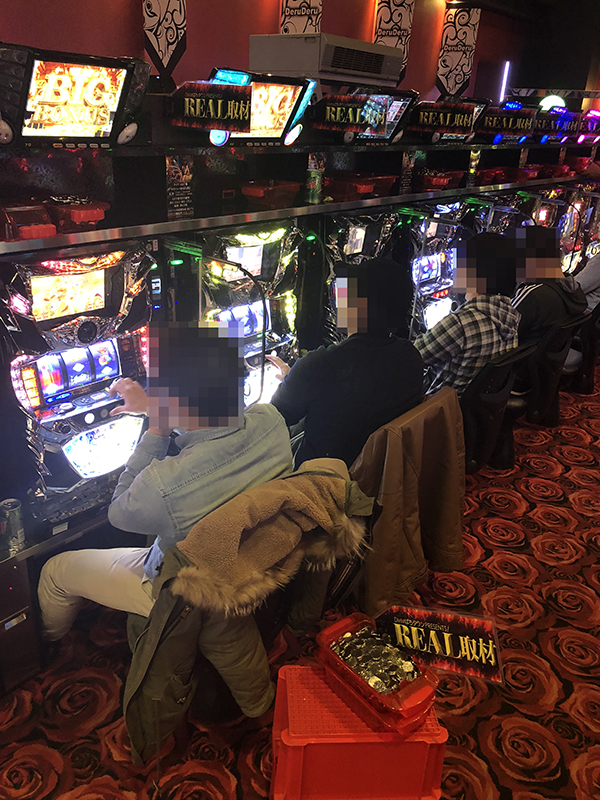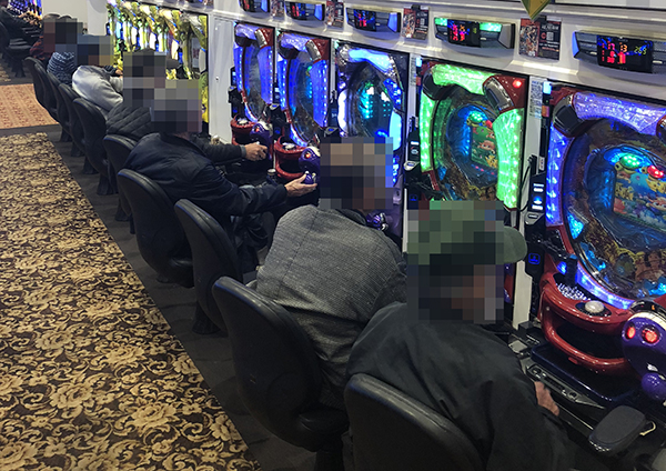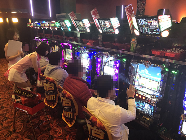 取材時、店内には既に多くのプレイヤーが集結。あふれんばかりの笑顔を浮かべながら遊技を楽しんでいた。
