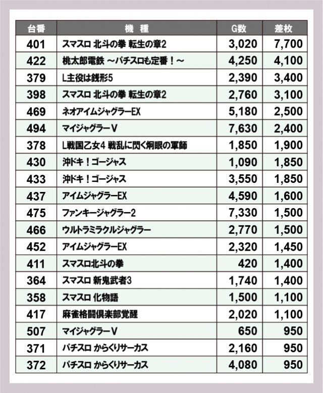 機種別差枚ランキング