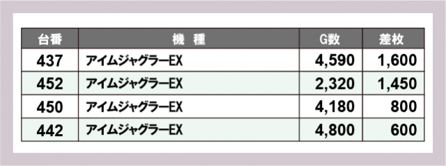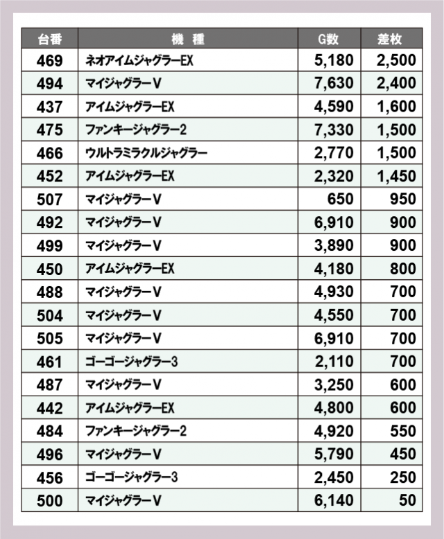 ジャグラー差枚ランキング